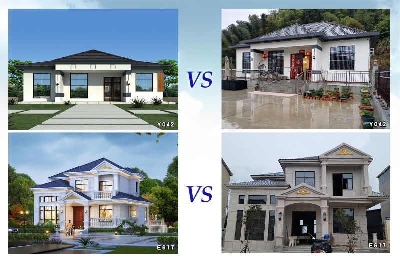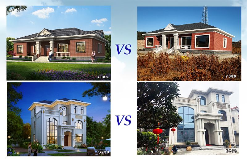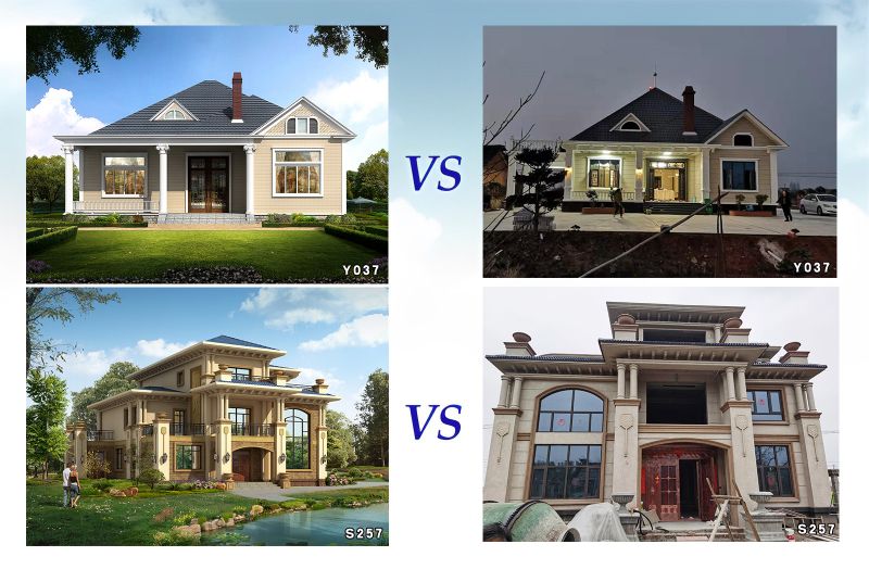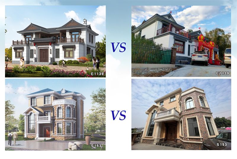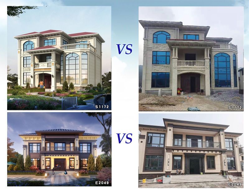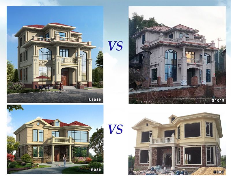 这些都是用我们的图纸建好的房子,按图施工可以100%还原效果图,既见既所得,图纸通俗易懂,农村施工队都会看,我们还提供免费的施工指导服务。