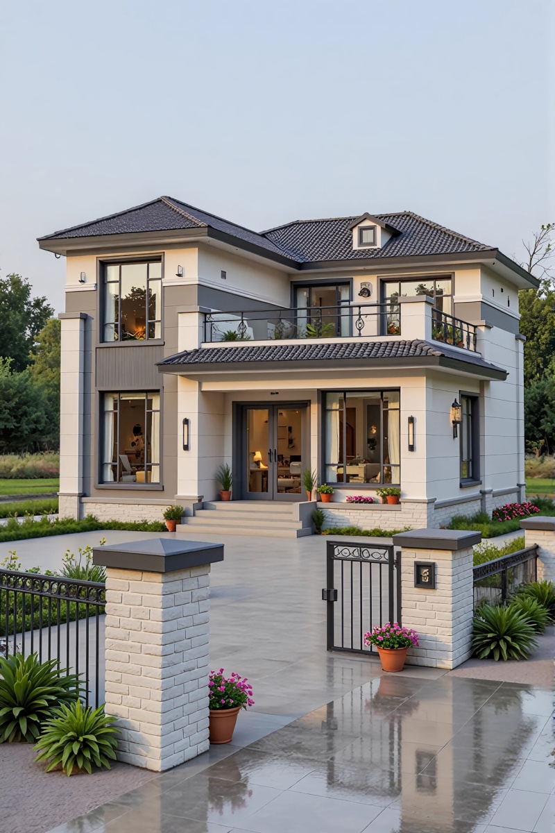 新中式二层小别墅造型,简约耐看