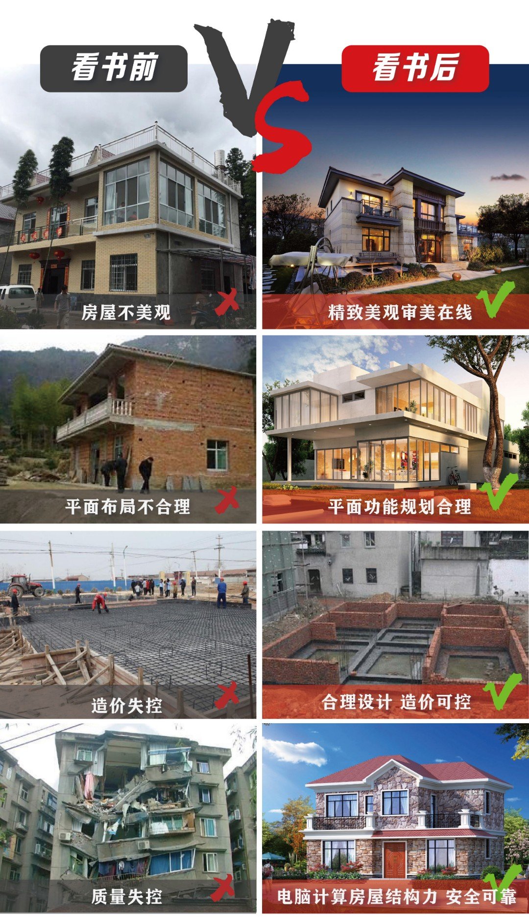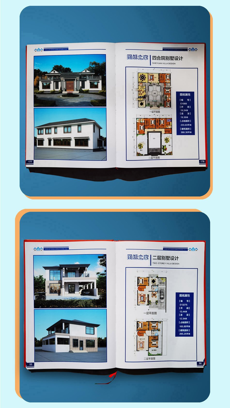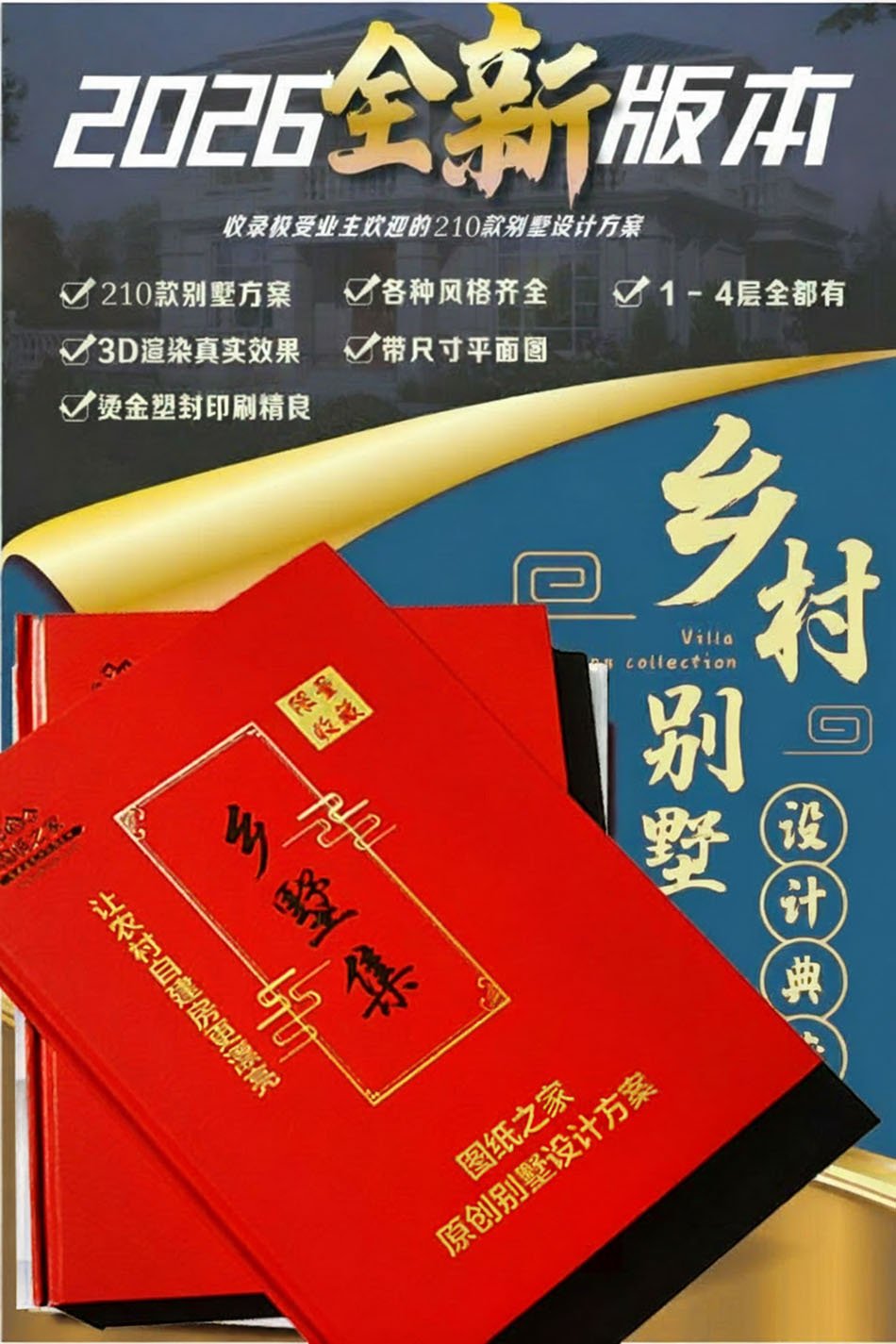《农村自建房设计图册》含210款经典方案(图册含150款+60款电子版),涵盖1-4层、双拼、合院等多种款式,附带电子版平面图(联系客服获取),年底促销价88元/册,全国包邮!