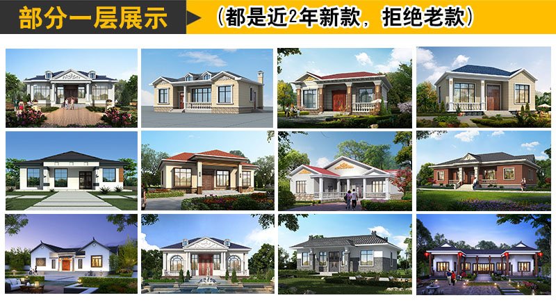 最漂亮的一层平房图片,全套设计图+高清效果图