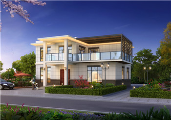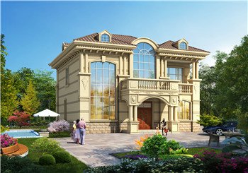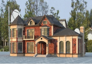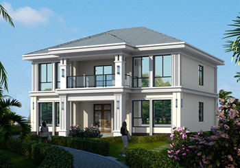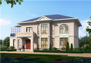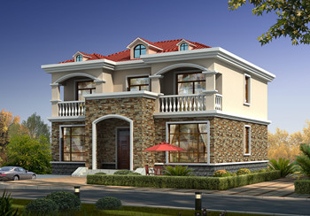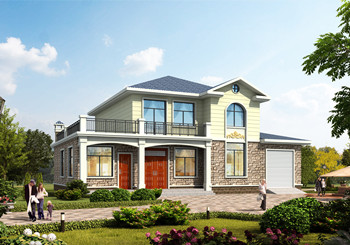 图纸介绍:本方案四个户型,B、C、D户型介绍及户型展示往下拉。120平方米新农村欧式时尚二层别墅自建房设计图纸,蓝色坡屋顶的设计,搭配真石漆外墙使得别墅整体造型突出亮眼,弧形的屋檐设计,使别墅充满欧式气息。占地方正,布局实用合理,多窗的设计,既保证了室内的采光又保证了室内的通风。