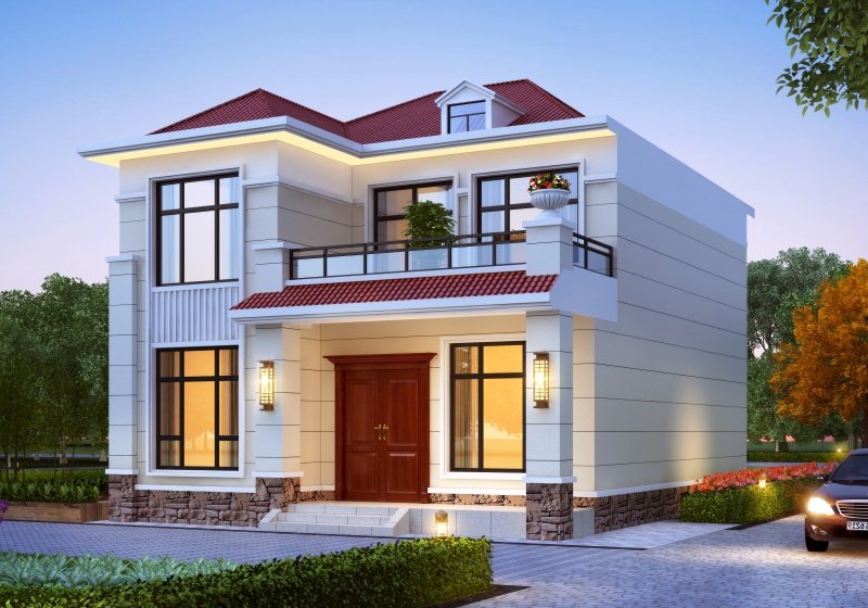 图纸介绍:对称简单二层别墅,13x13米5室2厅,空间宽敞布局好,雅致大方的户型,不仅外观考究,配色也很讲究,米黄色的真石漆细腻美好,提升房屋质感于无形,再搭棕色线条与墙面装饰元素,更显别致。多窗设计,清新雅致!