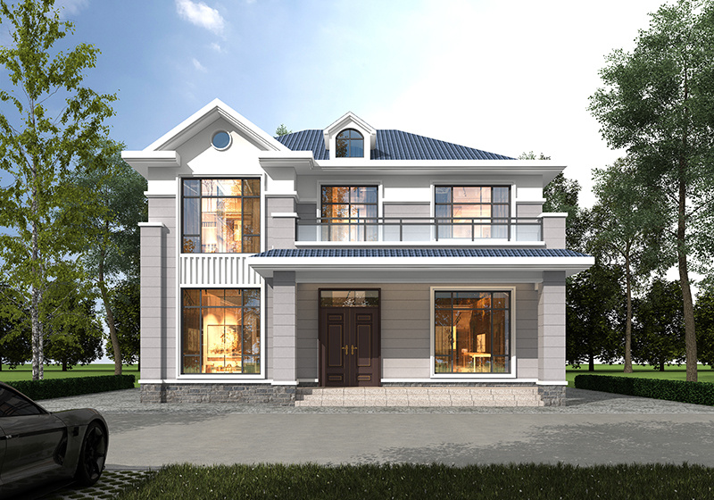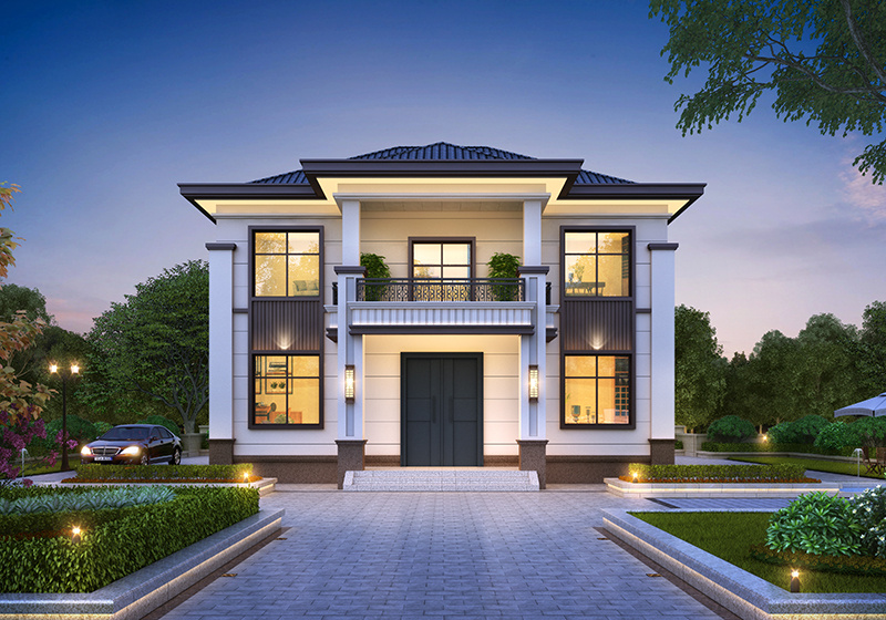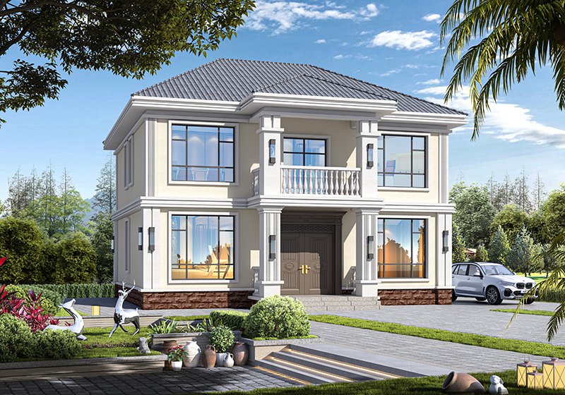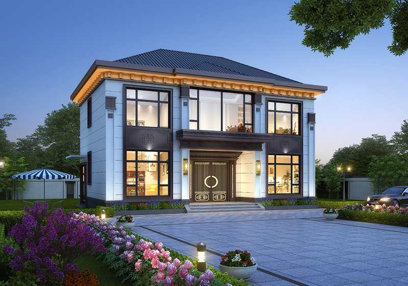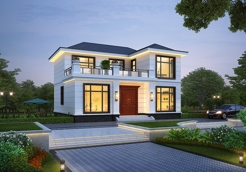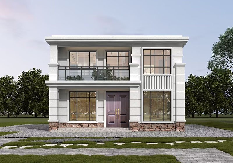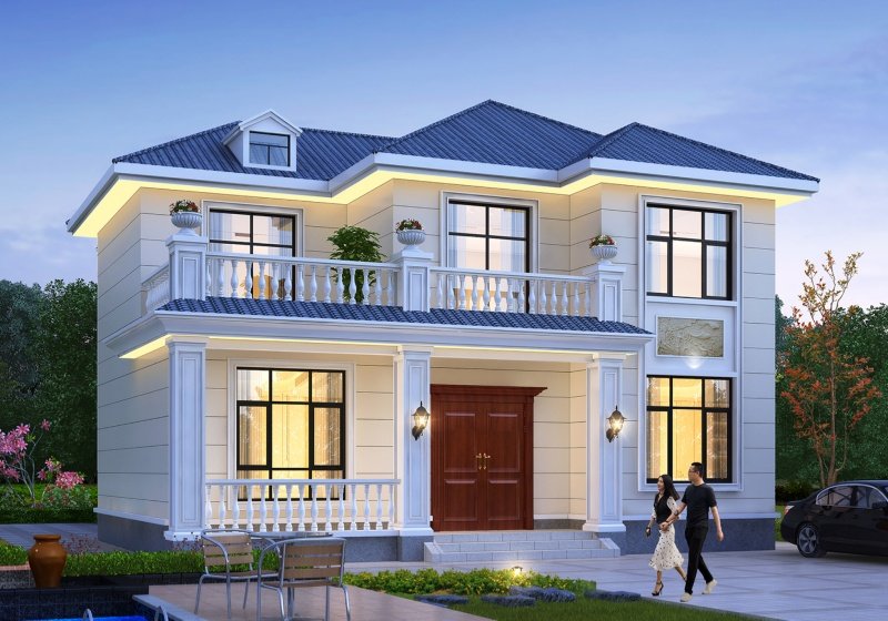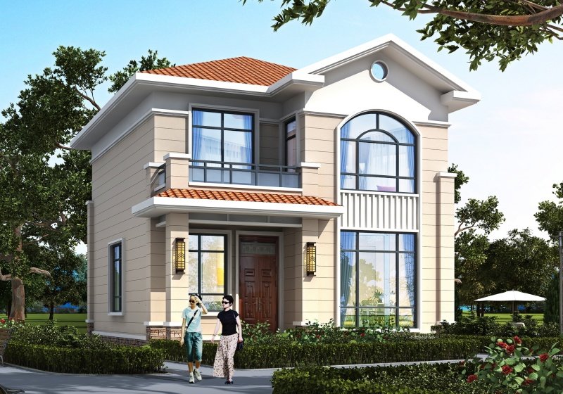 图纸介绍:占地107平米两开间别墅设计图,适合小面宽和资金紧缺的,精致时尚,布局实用,家里能申请到的宅基地普遍都不大,特别是面宽不够,可选择小面宽别墅。