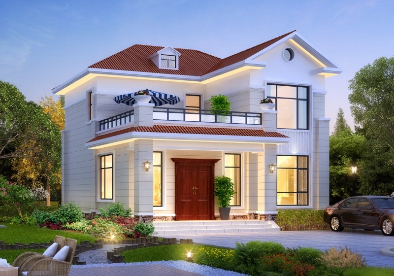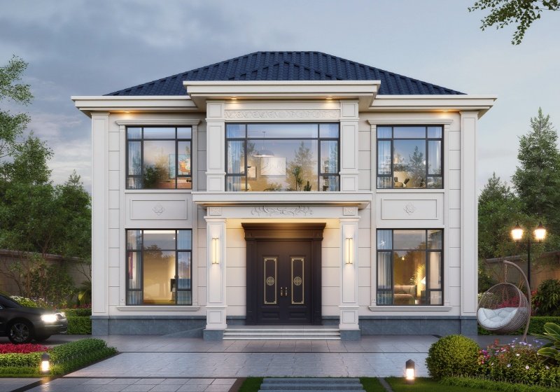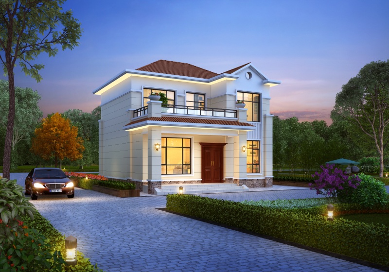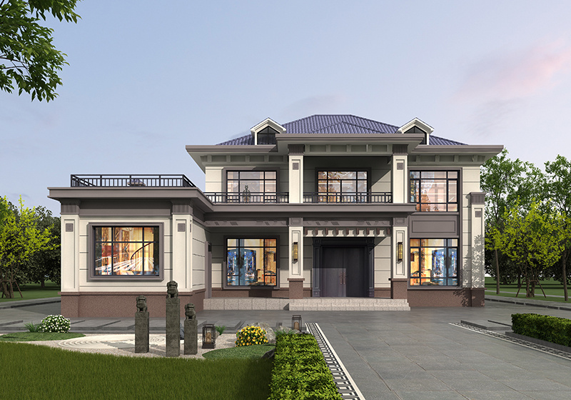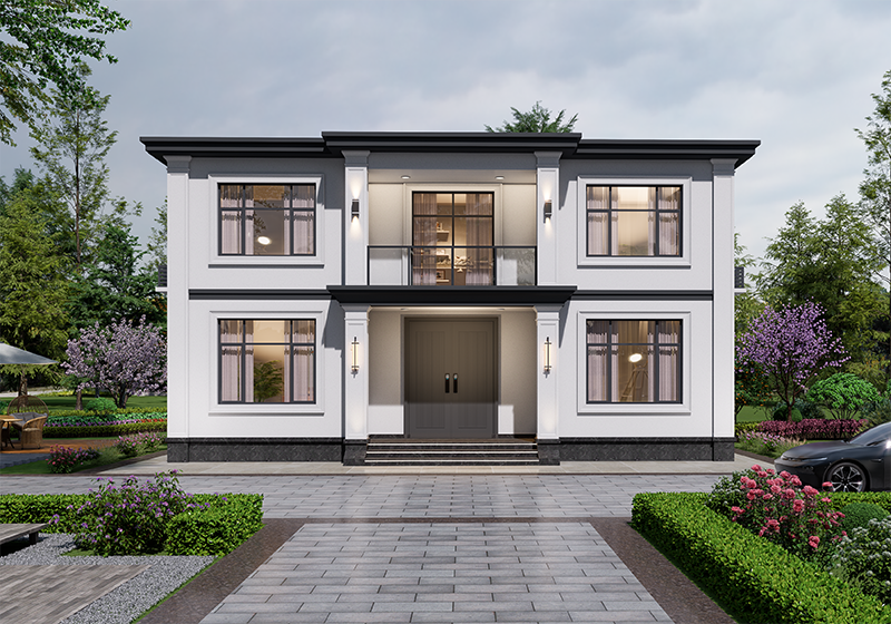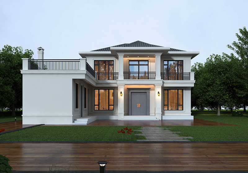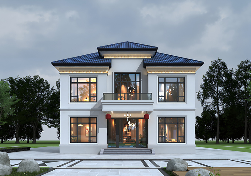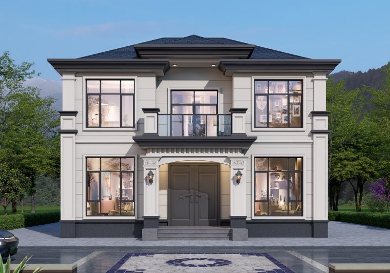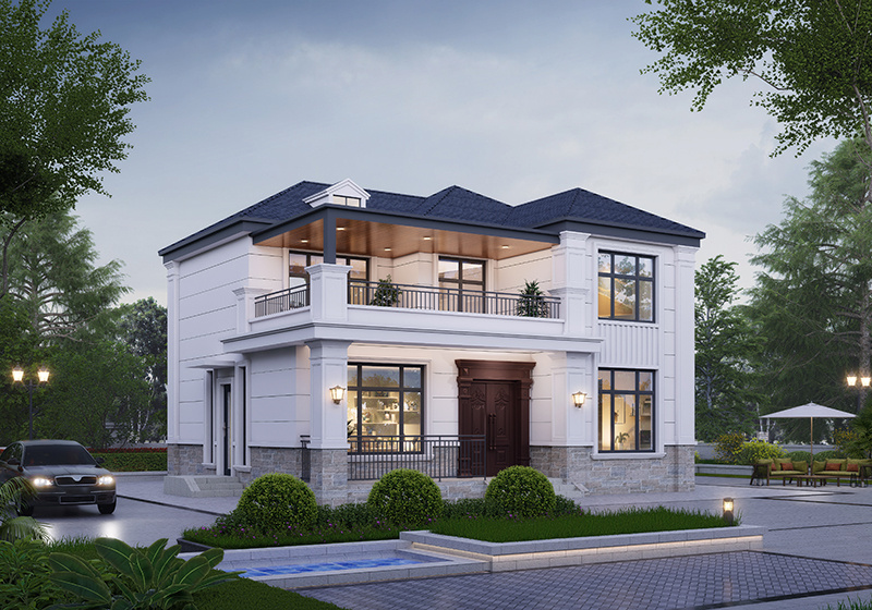 图纸介绍:占地107平米两开间别墅设计图,适合小面宽和资金紧缺的,精致时尚,布局实用,家里能申请到的宅基地普遍都不大,特别是面宽不够,可选择小面宽别墅。