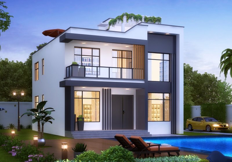 二层户型:客厅、书房、卧室x4、卫生间、露台;