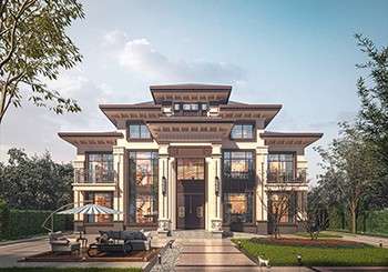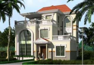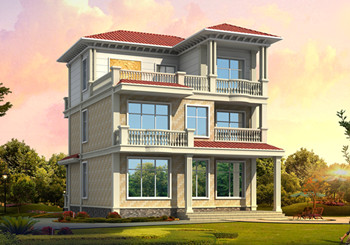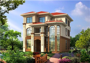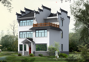图纸介绍:新中式带露台30万左右农村三层别墅,客厅中空,外观高低错落有致,建筑色彩鲜艳丰富,富有层次感的坡屋顶,它象征着富足美好的乡村田园生活。