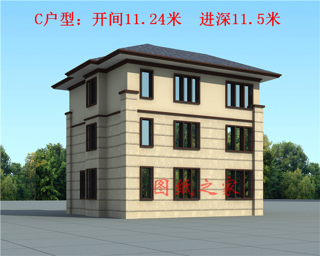 C户型:开间11.24米 进深11.5米 占地124平米左右 框架结构 户型合理