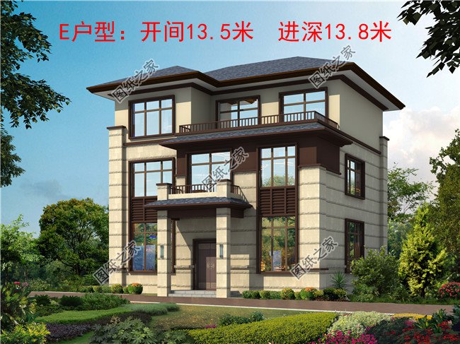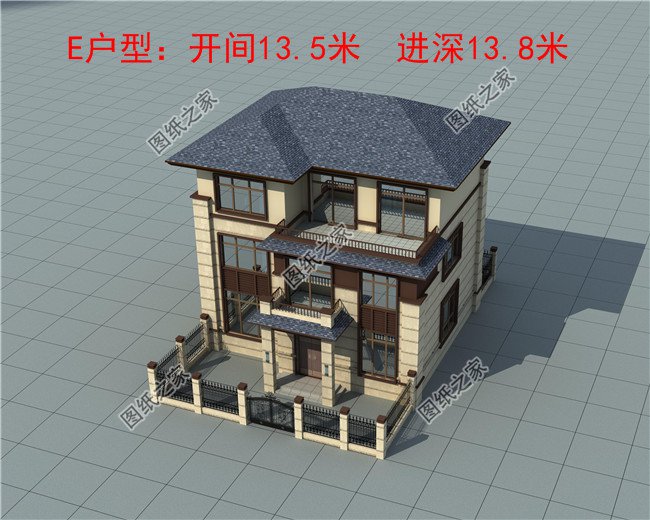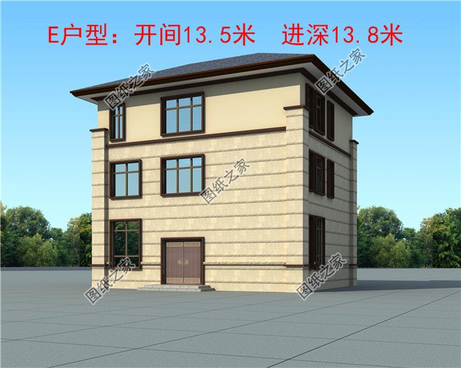E户型:开间13.5米 进深13.8米 占地163平米左右 框架结构