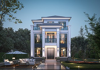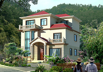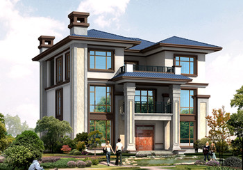 图纸介绍:本方案二个户型,B户型介绍及户型展示往下拉。新农村中式三层四合院别墅设计户型图,农村自建四合院效果图,别墅外观造型简单大方,线条干净利落,整体艺术感十足;特别适合喜欢中式又追求个性的建房者,因为两种风格完全相融。外墙采用白色涂料,加以浅黄色作为点缀。屋顶采用蓝色琉璃瓦,多个坡顶,高低有序,层次分明。别墅占地方正,四平八稳,多窗的风格保障室内通风,也增强视觉效果。