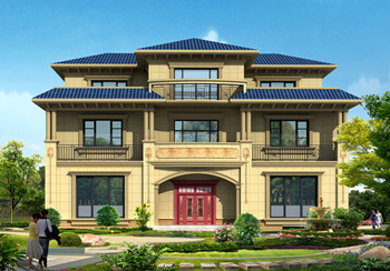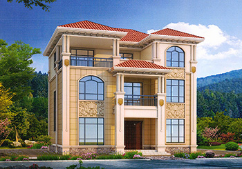 图纸介绍:本方案三个户型,B户型、C户型介绍及户型展示往下拉。新农村三层豪华欧式别墅高端复式三层自建房设计图纸及效果图,别墅外观清新自然,没有过于复杂的装饰,设计上却能凸显出年轻人不拘一格的特性。采用黄色调为主,营造融洽温馨的居住氛围,方形罗马柱屹立在门前,搭配红色双叶大门,屋顶还有大露台,,这样的户型一看就是大户人家,路过也会不禁看一眼,,在农村建这样一套房子倍有面子。
