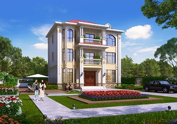 图纸介绍:新款农村三层别墅设计图纸及效果图片大全,简欧式风格,外墙用到的是灰白色真石漆,这种颜色在欧式里面尤为多见,彰显出一种优雅的气质。采用南北通透的设计,这种设计在农村自建房中还是尤为常见的,客厅和厨房餐厅的空间很宽敞,体现出一种一层的大气感;二层三个房间三个卫生间,一一对应这样会比较卫生也比较方便。三层的大露台可供日常休闲使用。