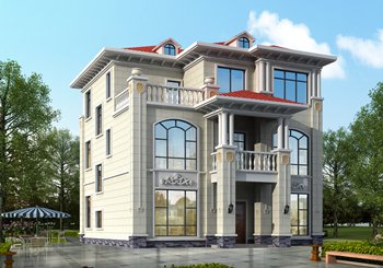 图纸介绍:本户型为农村三层楼房设计图,简欧风格,外观保留欧式的大气奢华,室内布局遵循中国传统居住习惯,艳丽的建筑配色,让别墅在建筑群中格外显眼,室内布局贴合农村居住习惯,简单、实用。