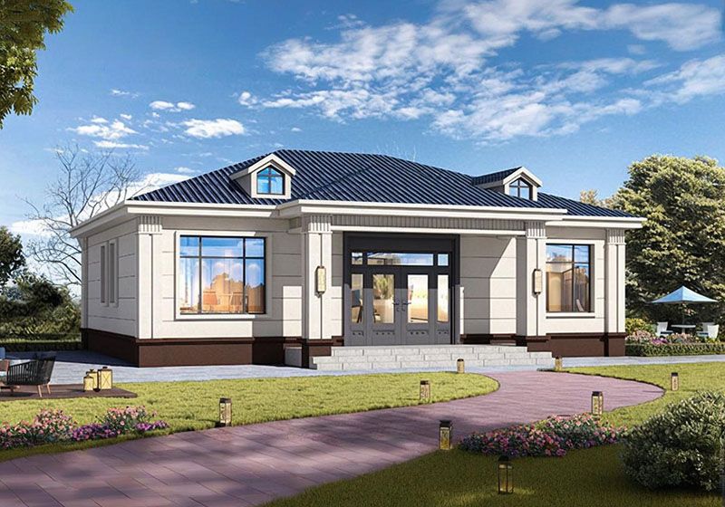 图纸介绍:农村一层中式合院别墅设计图纸,含外观图片,带小院子的规划设计,有庭有院,风水绝佳,排队来参观的人不少灰墙黑瓦,木质窗格,保留四合院的古朴风采,褪去繁复的造型,既保留中式古宅的意蕴,同时更具有生活气息。大门围墙也有雕花窗格,注重细节的雕刻,别有一番风味。别墅与山水相接,自然融入在大自然的风光秀丽中,好一幅山水田园水墨画,此情此景只有梦中有,人间哪得几回闻。四间卧室,足够一家人居住,两间带有独卫,生活更加方便,也有利于保护个人的隐私性。客厅居于走廊和卧室正中间,将室内布局划分得更加清晰明了,整个空间合理有序,生活有条不紊。入门就是大庭院,尽显大户人家的大手笔,让人心生敬畏。周围又是幽深的走廊,凸显古朴质感。右边书房茶座,可以引客在此休憩,泡上一壶清茶,尽享片刻悠闲。