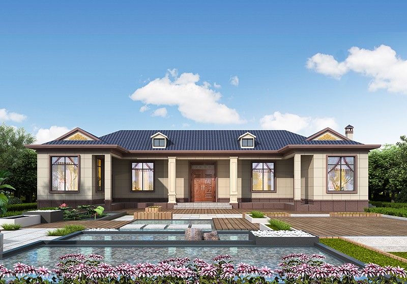 图纸介绍:一层农村自建房别墅设计方案,左右对称布局好,经济大方南北方都能建,一层别墅不单是节省预算,而且老人住起来更加方便,不用再上下爬楼梯,我们在外面打拼也更加安心。