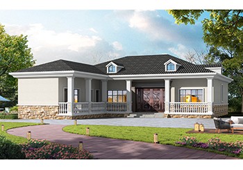 一层户型:客厅、厨房、餐厅、卧室(带卫生间)、卧室x4、娱乐室、卫生间;
