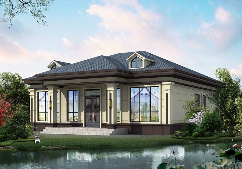 一层户型:客厅、厨房、餐厅、卧室x4、卫生间、洗衣区;